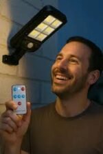 lampara solar tipo paleta DROMant n a tu familia siempre segura mientras ahorras dinero gracias a la l mpara solar con control y sensor de movimiento Su material de alta calidad lo hace una foco panel perfecto para exterior resistente a la lluvia polvo y a los cambios clim ticos Las l mparas solares con detecci n son consideradas como uno de los mejores sistemas de seguridad cl sicas que no consumen energ a el ctrica y son amigables con el medio ambiente Ya que cuentan con una carga solar que provee luz continua de 3 a 6horas Y se encienden cuando su sensor de movimiento es activado es decir cuando alguien o algo se mueve Al no consumir energ a el ctrica ahorrar s dinero en planillas de luz Estar s atento ante cualquier intruso adem s de que estar encendida cuando sea necesario El control permite manejar los 3 modos de luz dependiendo del lugar y el ambiente Esta l mpara cuenta con un soporte angular de f cil instalaci n para ajustar el nivel y la direcci n de iluminaci n donde desee
